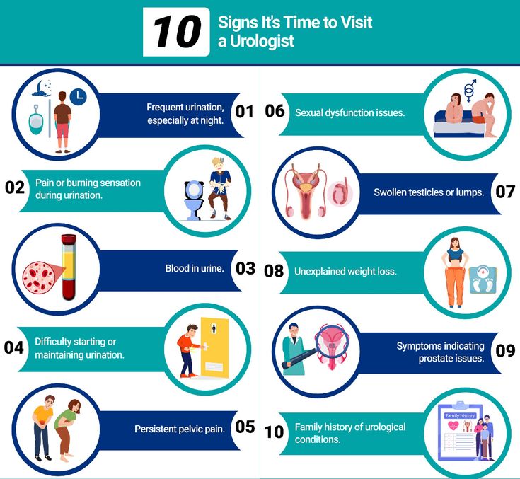 Symptoms indicating prostate issues (e.g., urgency, weak stream).
